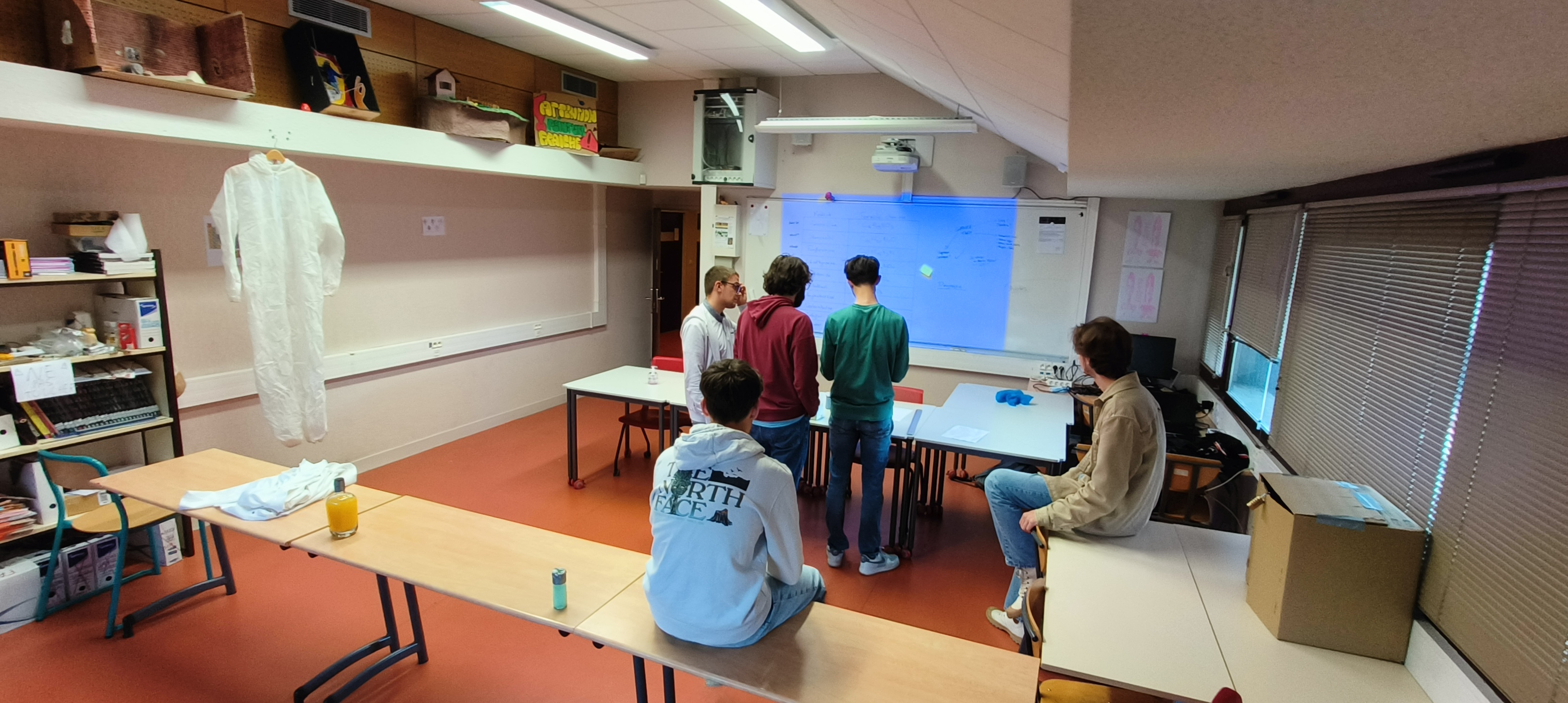 La création de l'escape game en elle-même s'est bien déroulé. Nous avons réussi à agencer la salle en fonction de nos besoins, à faire preuve d'inventivité pour créer des énigmes répondant à la fois à un besoin d'amusement de la part des joueurs, et un besoin de compréhension du sujet employé.